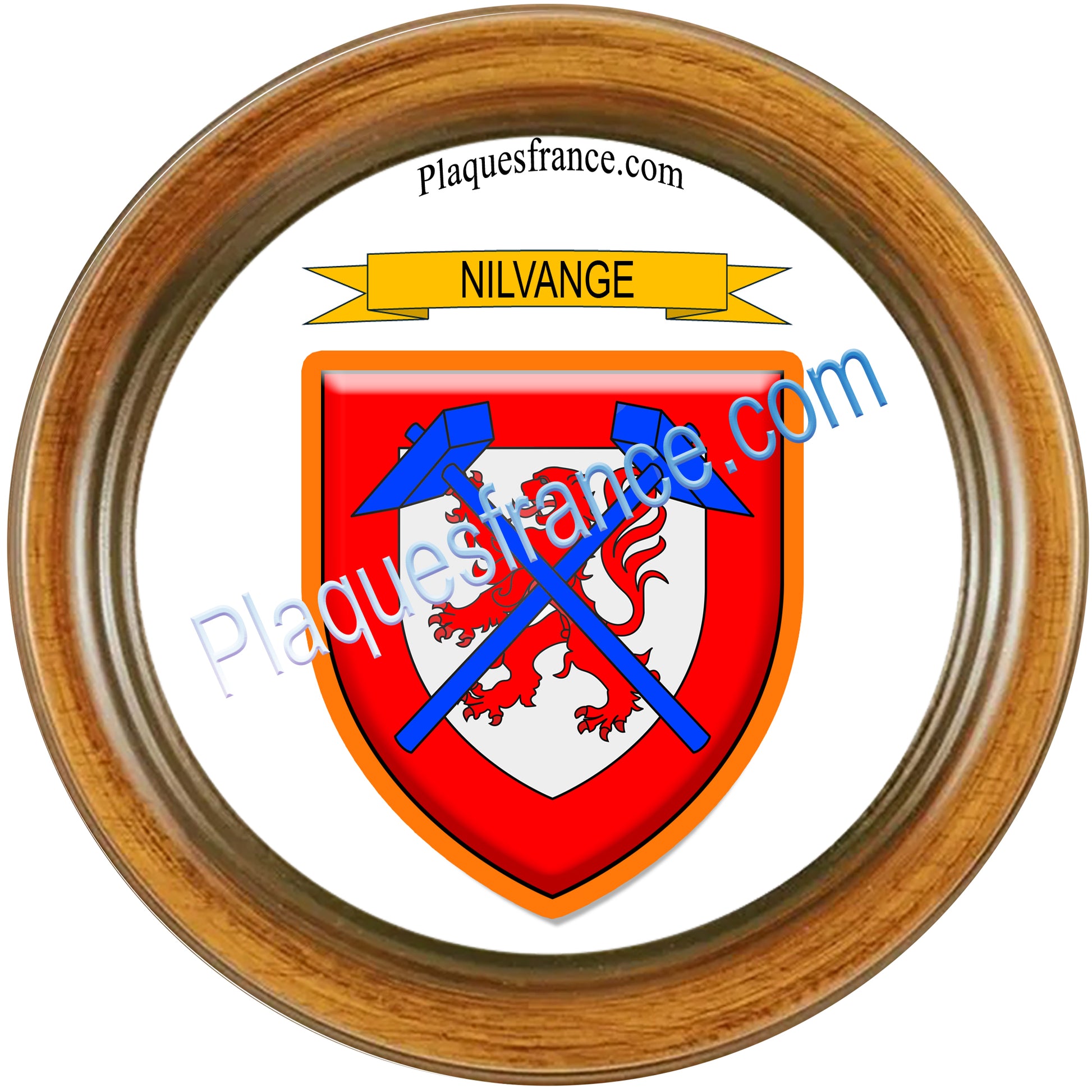 Plaque métal décorative cadre bois Ø 30 cm blason Nilvange, canton Nilvange 57