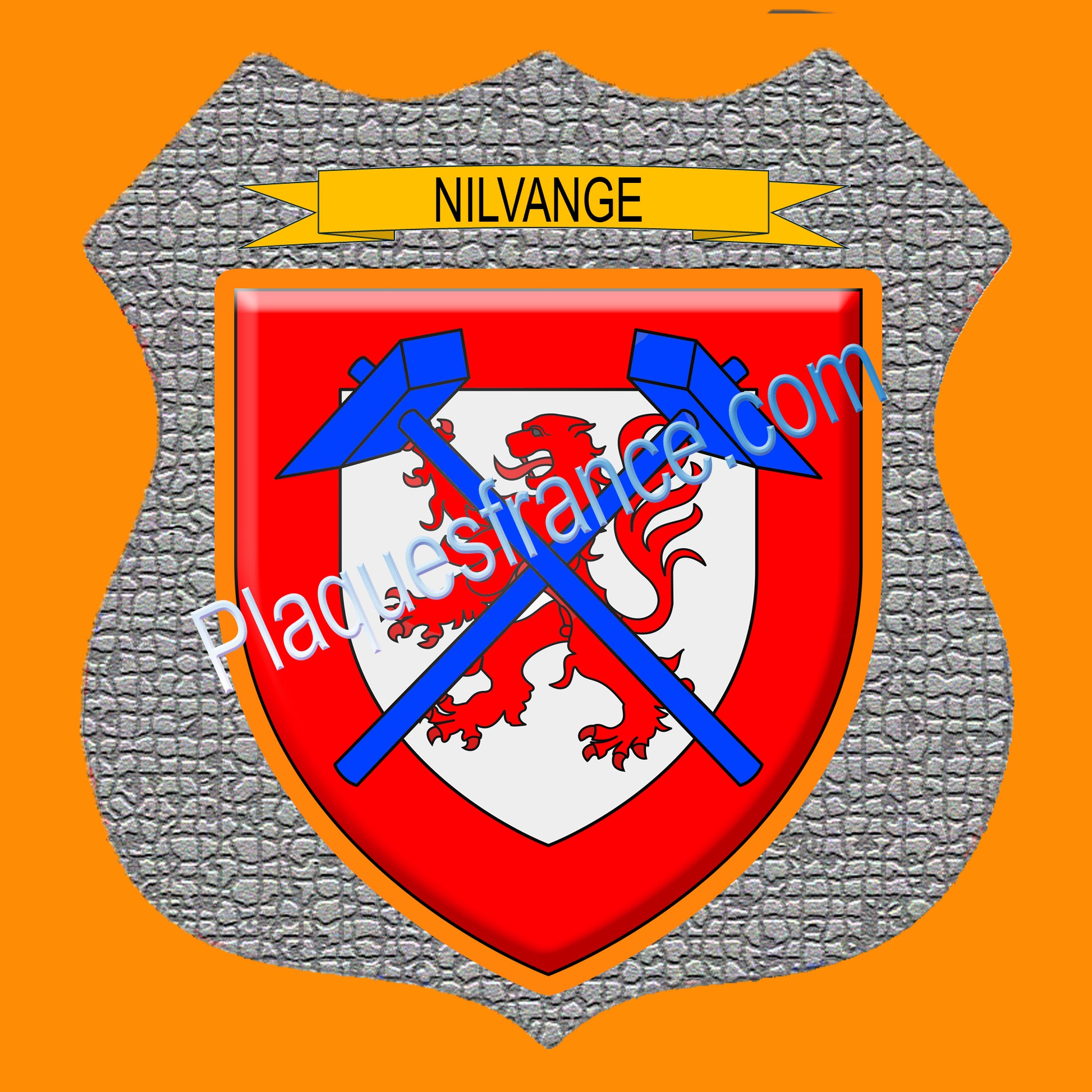 Plaque métal décorative écusson fond mozaique format Ø 30cm blason Nilvange, canton Algrange 57