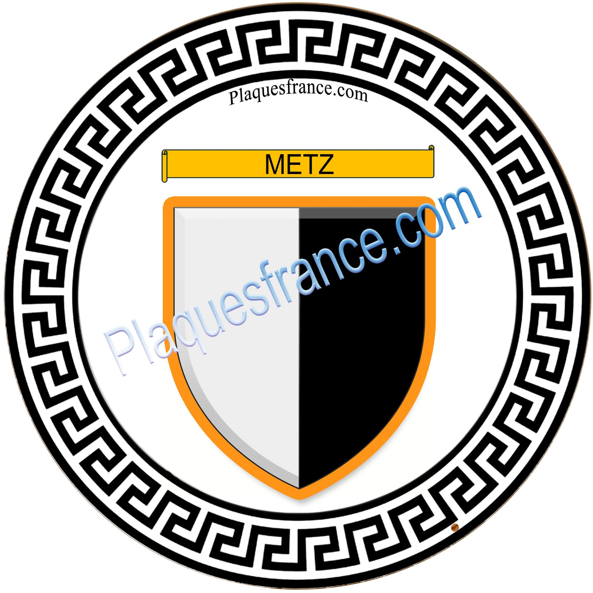 Plaque métal décorative fond blanc Ø 30cm blason Metz, Moselle 57