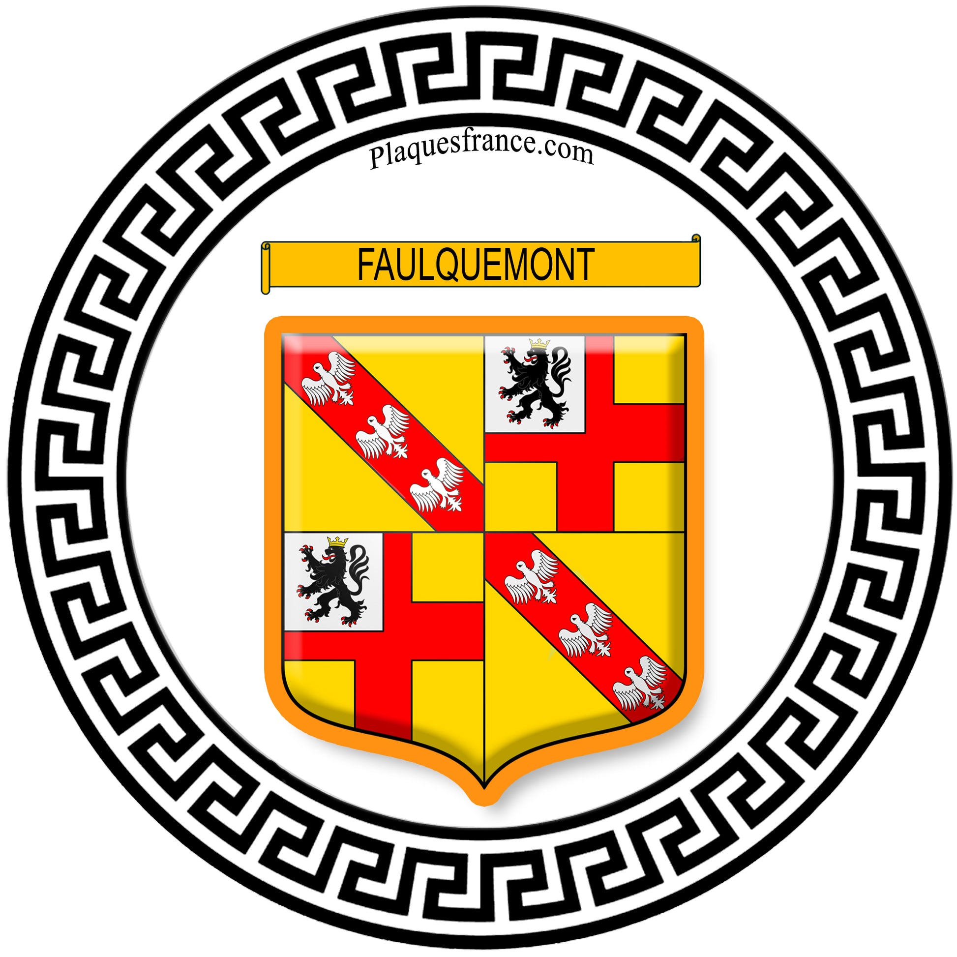 Plaque métal décorative fond blanc rond Ø 30 cm blason Faulquemont, canton Faulquemont 57