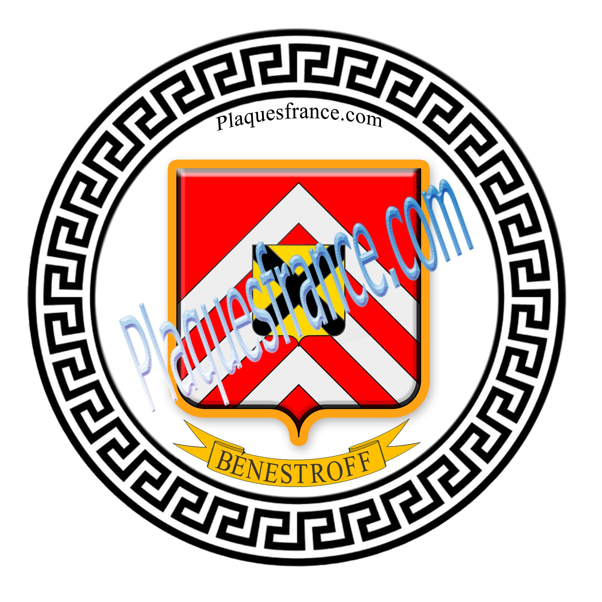 Plaque métal décorative fond blanc ronde Ø 30 cm Bénestroff, canton du Saulnois Moselle 57