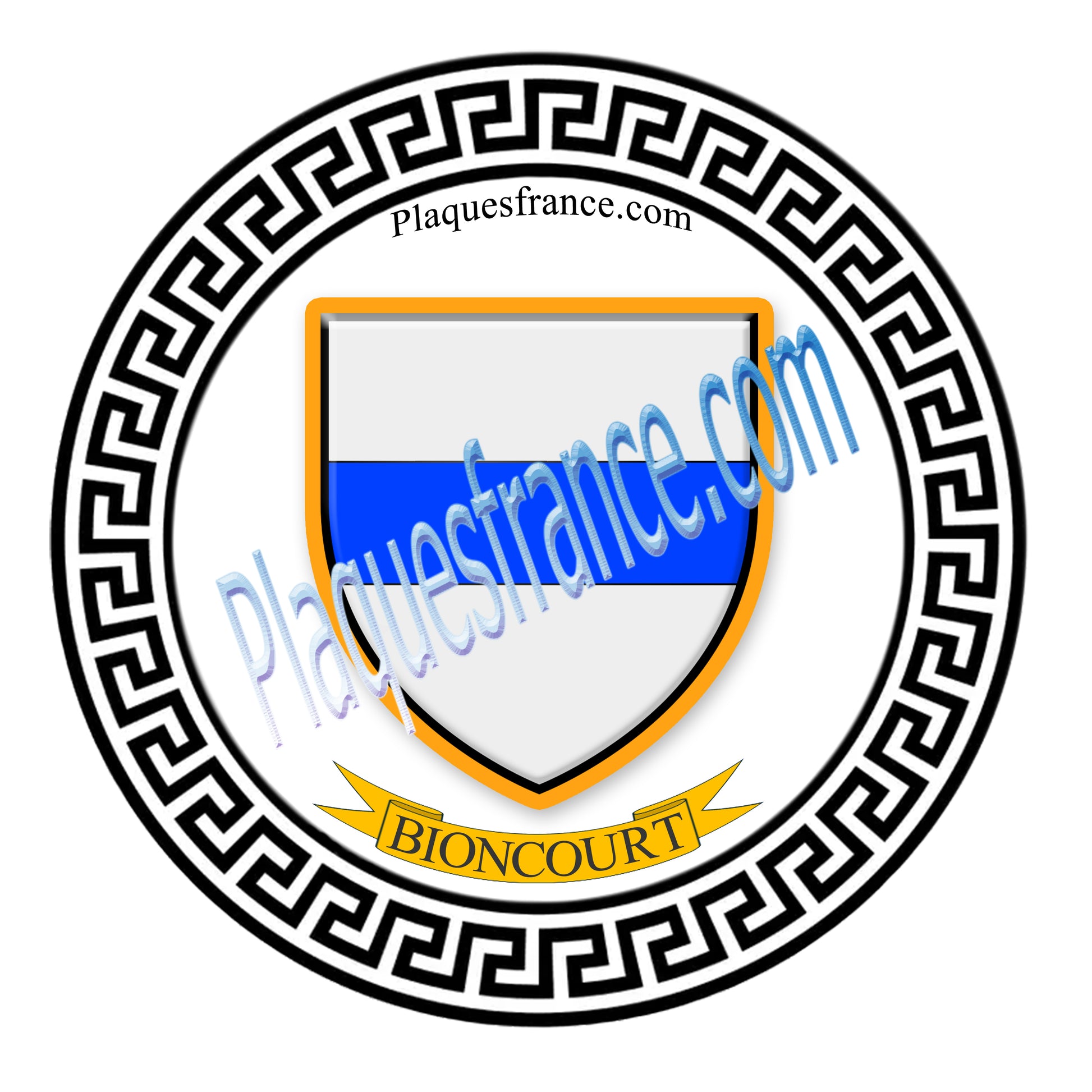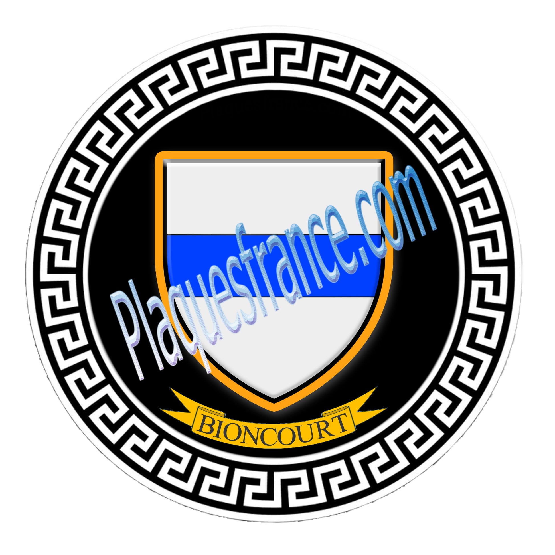Plaque métal décorative fond blanc ronde Ø 30 cm Bioncourt , canton du Saulnois Moselle 57