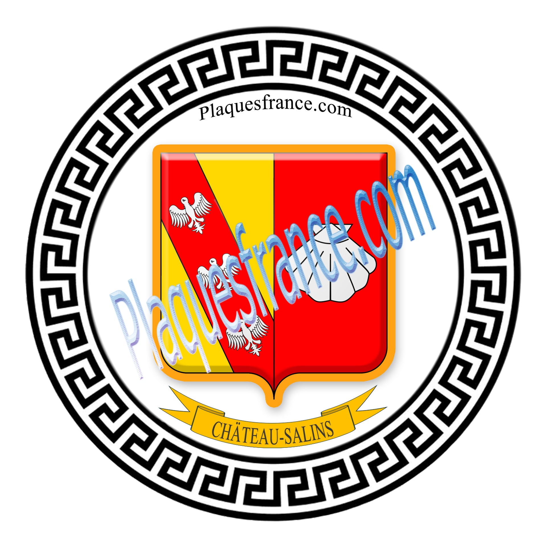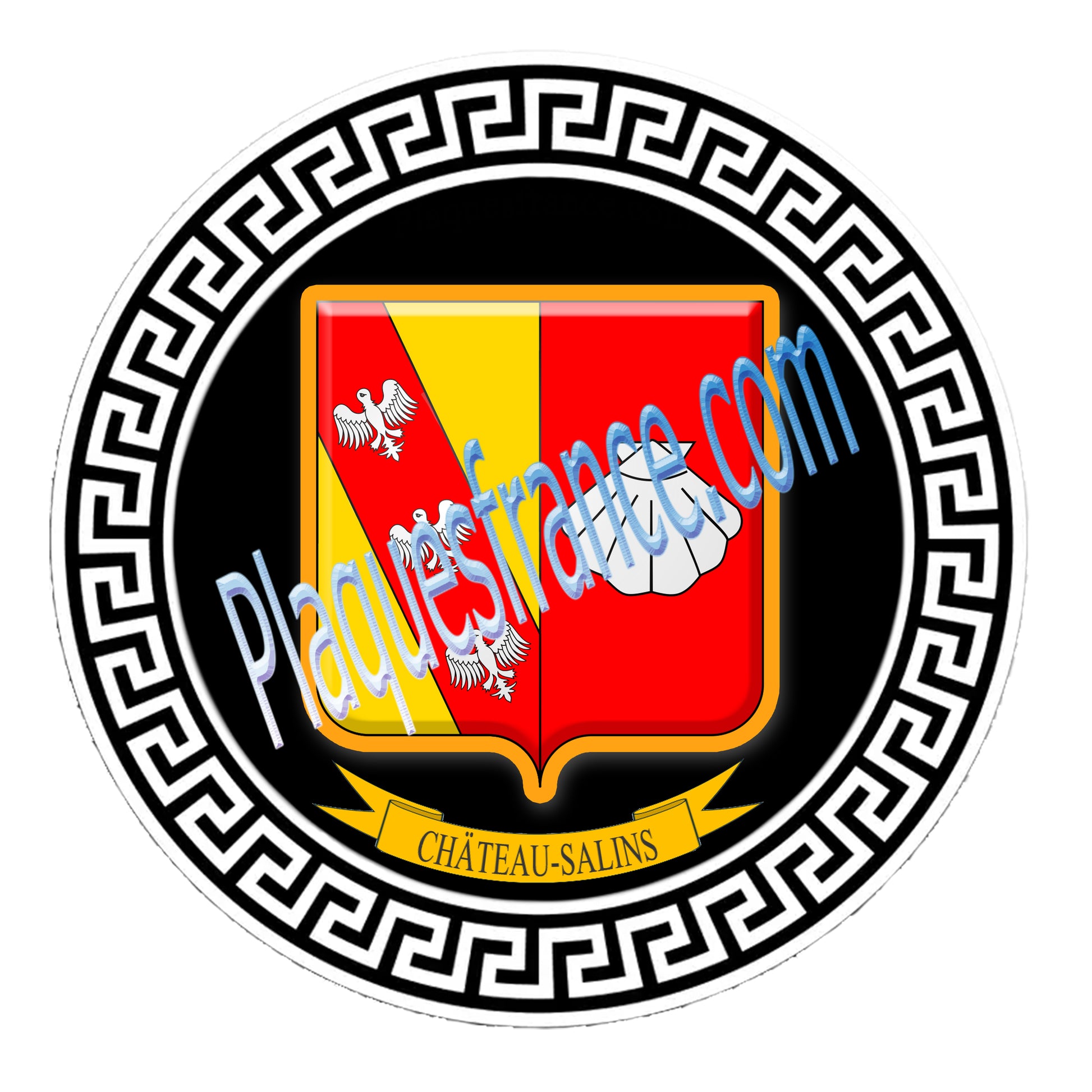 Plaque métal décorative fond blanc ronde Ø 30 cm Château-Salins, canton du Saulnois Moselle 57