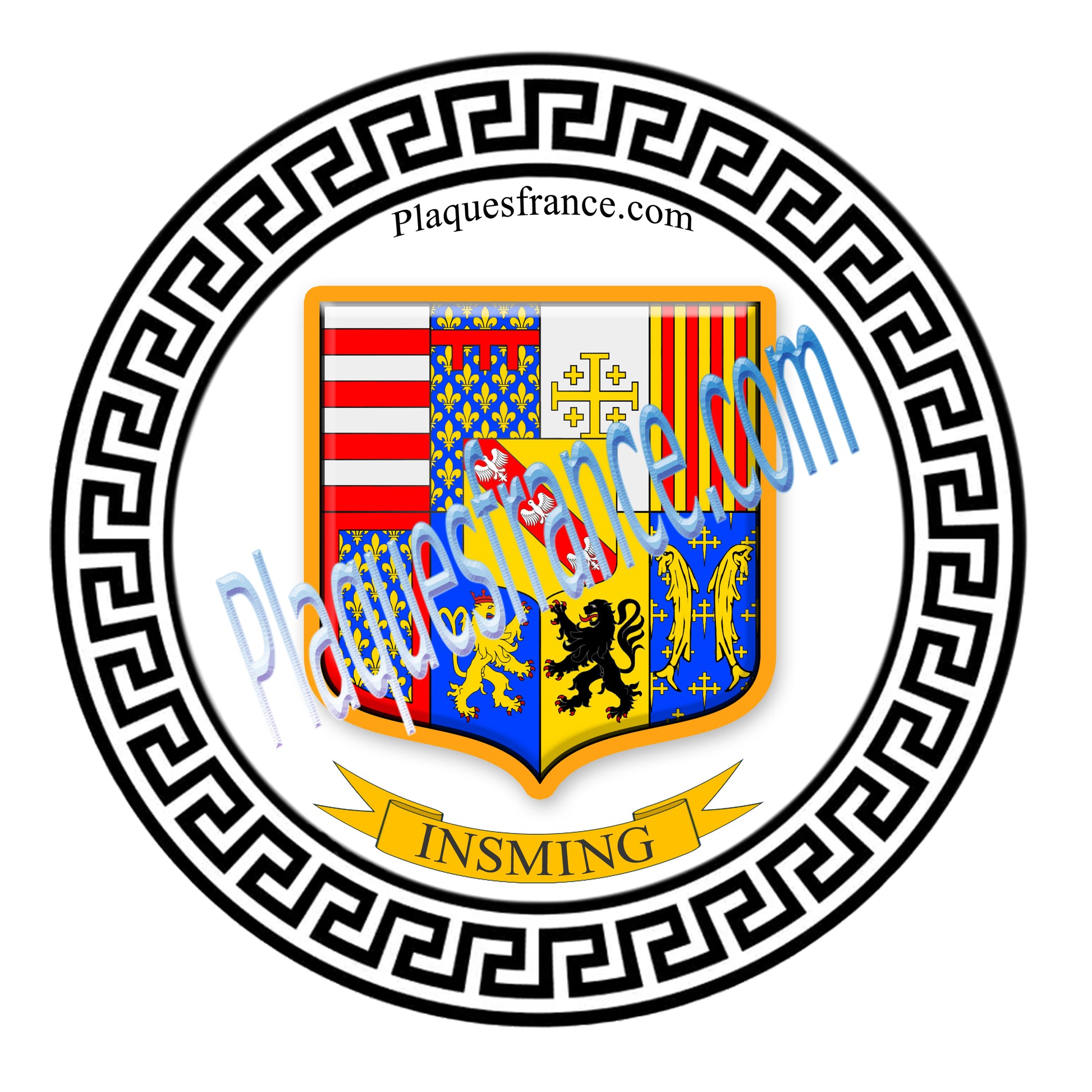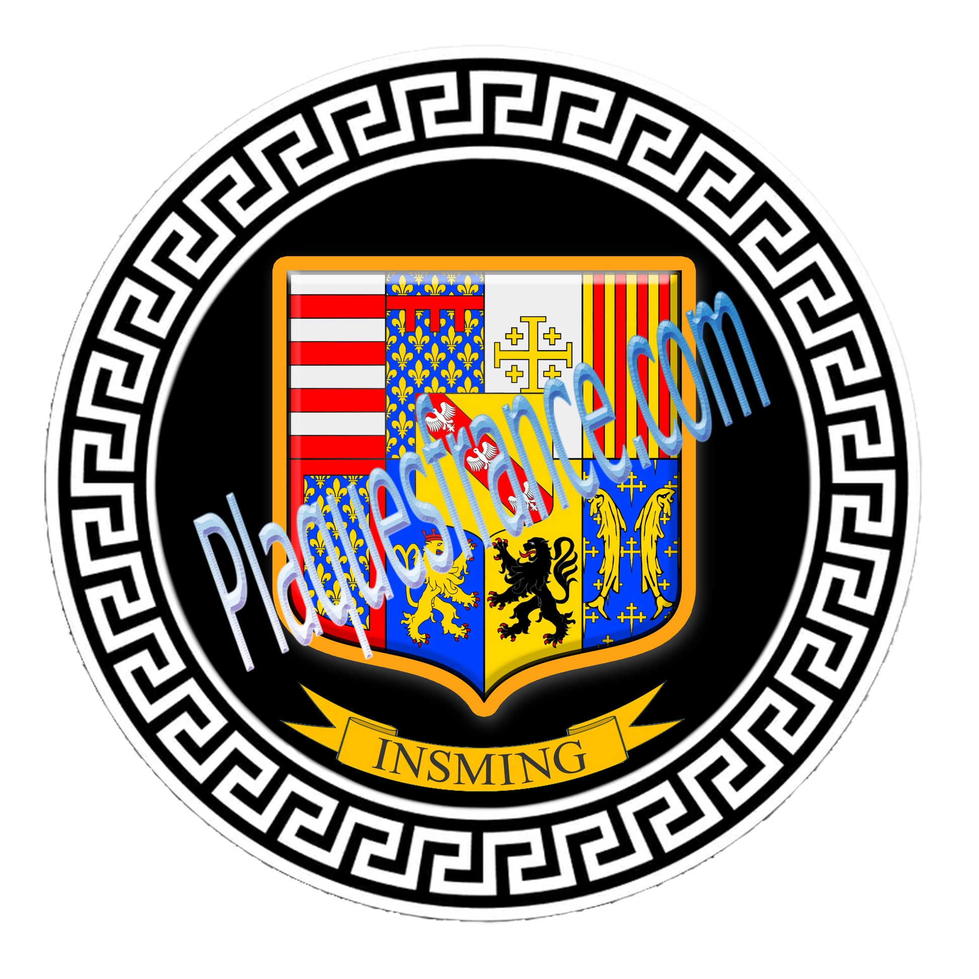 Plaque métal décorative fond blanc ronde Ø 30 cm Insming, canton du Saulnois Moselle 57