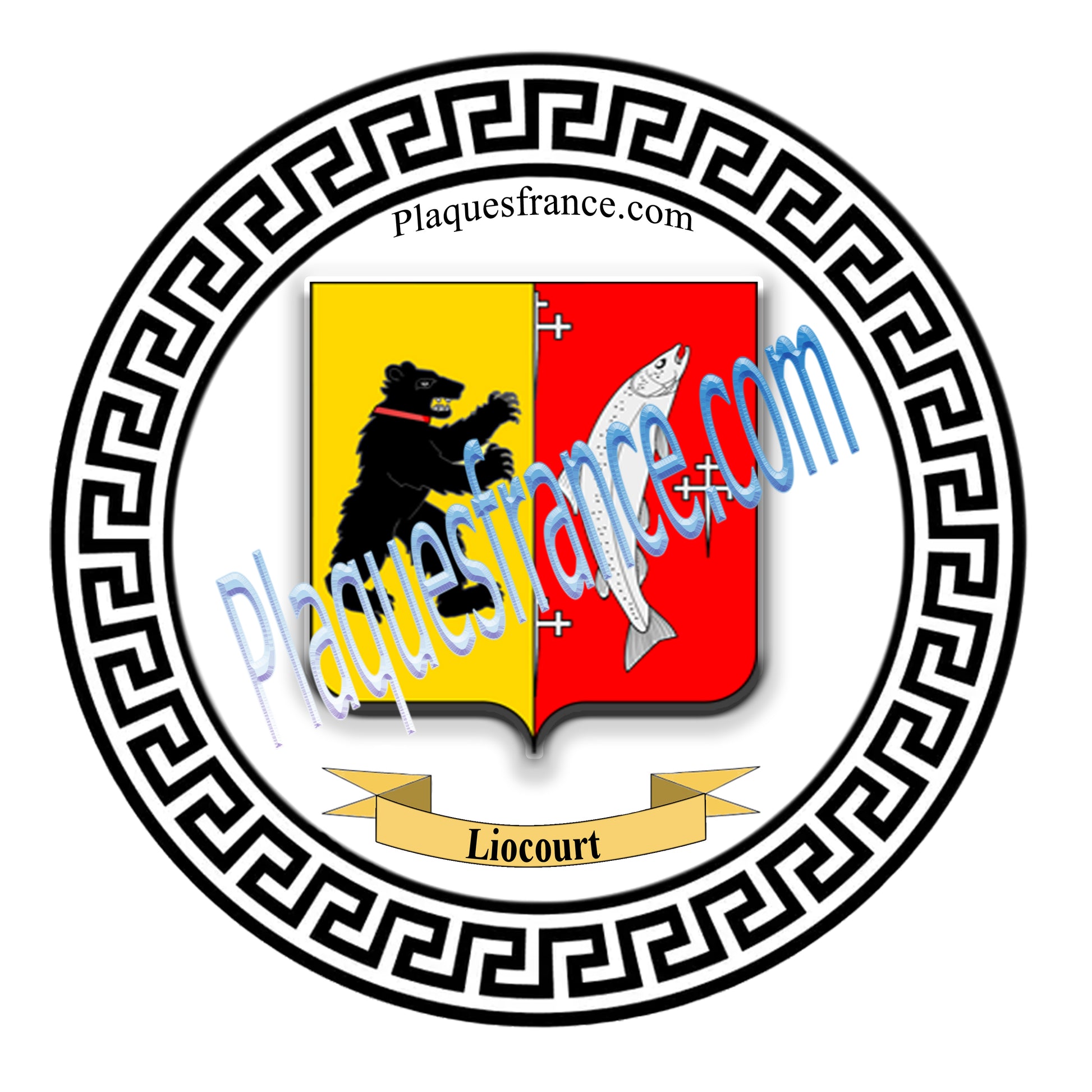 Plaque métal décorative fond blanc ronde Ø 30 cm Liocourt, canton du Saulnois Moselle 57