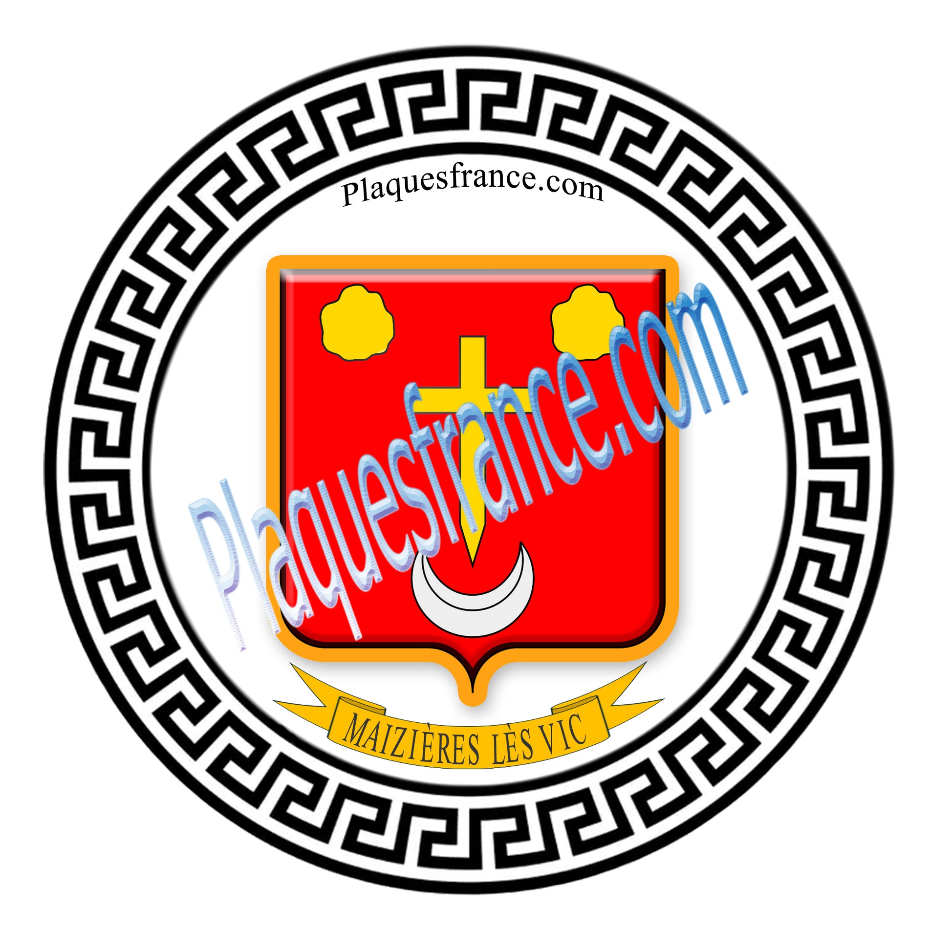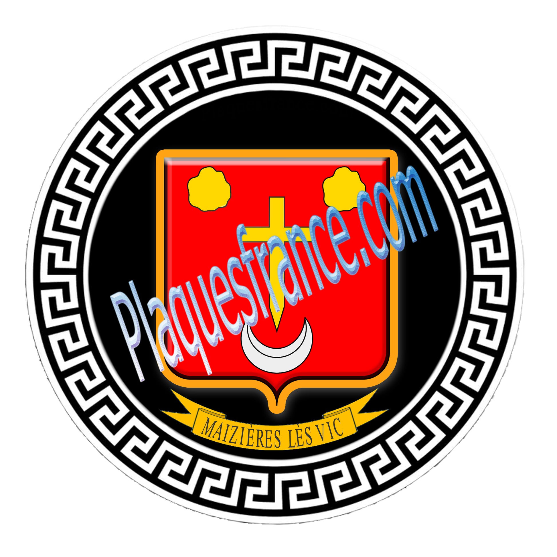 Plaque métal décorative fond BLANC ronde Ø 30 cm Maizières-lès-Vic, canton du Saulnois Moselle 57