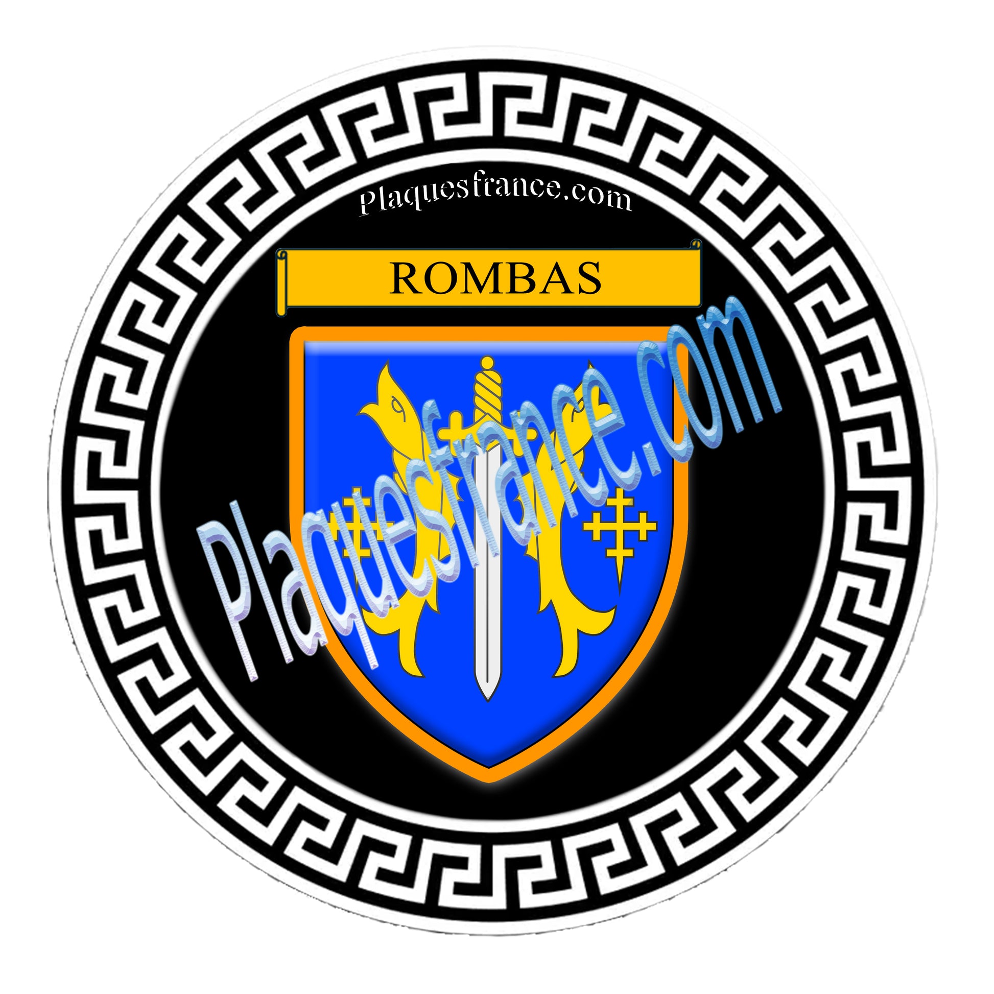 Plaque métal décorative fond noir ronde Ø 30 cm blason Rombas, canton de Rombas, Moselle 57