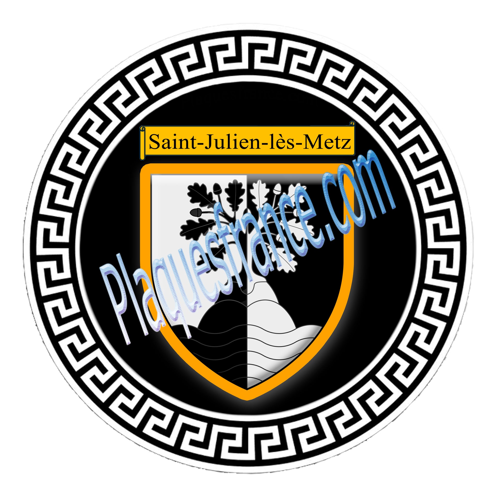 Plaque métal décorative fond noir ronde Ø 30 cm blason Saint-Julien-lès-Metz, canton Le Pays Messin Moselle 57