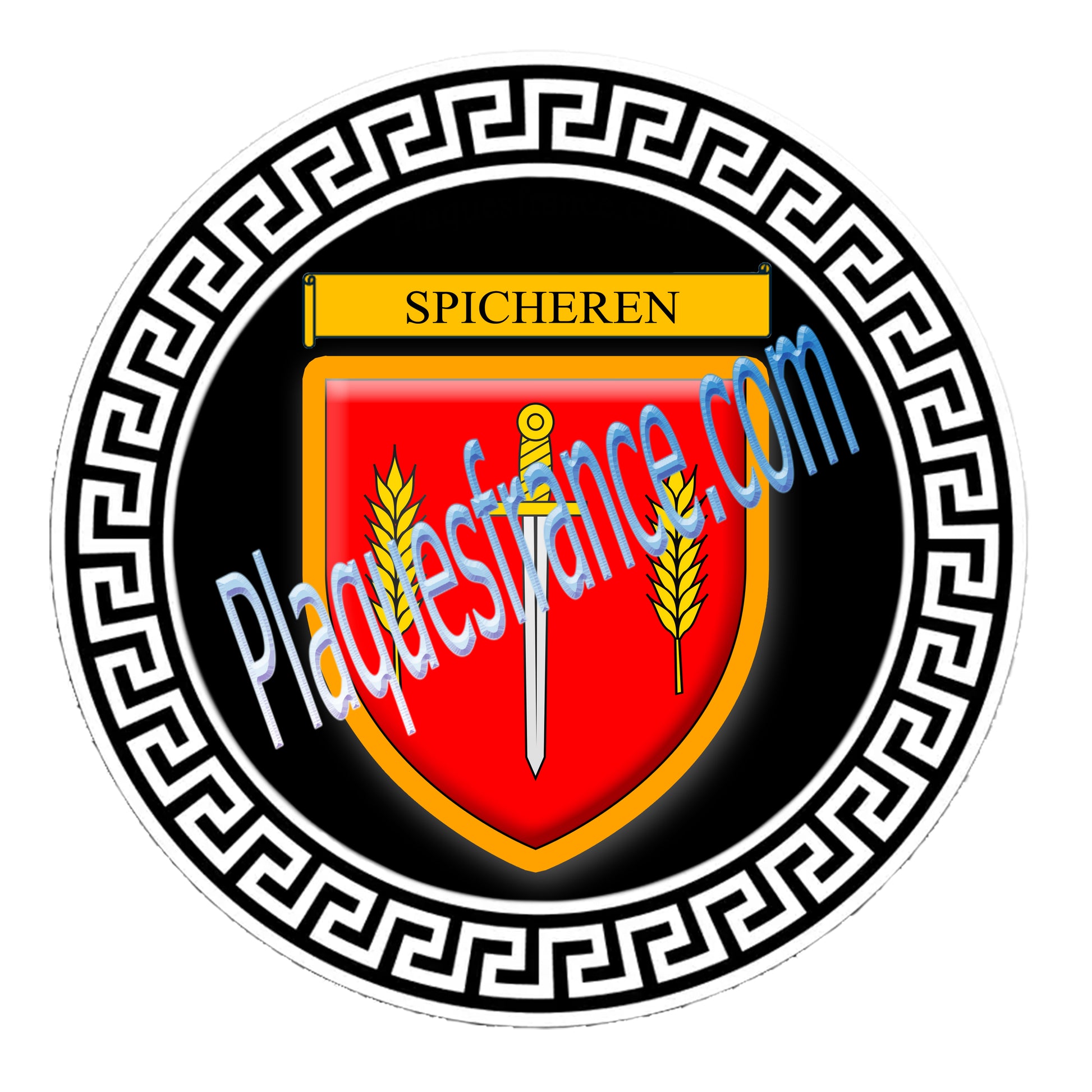Plaque métal décorative fond noir ronde Ø 30 cm blason Spicheren, canton Stiring-Wendel Moselle 57