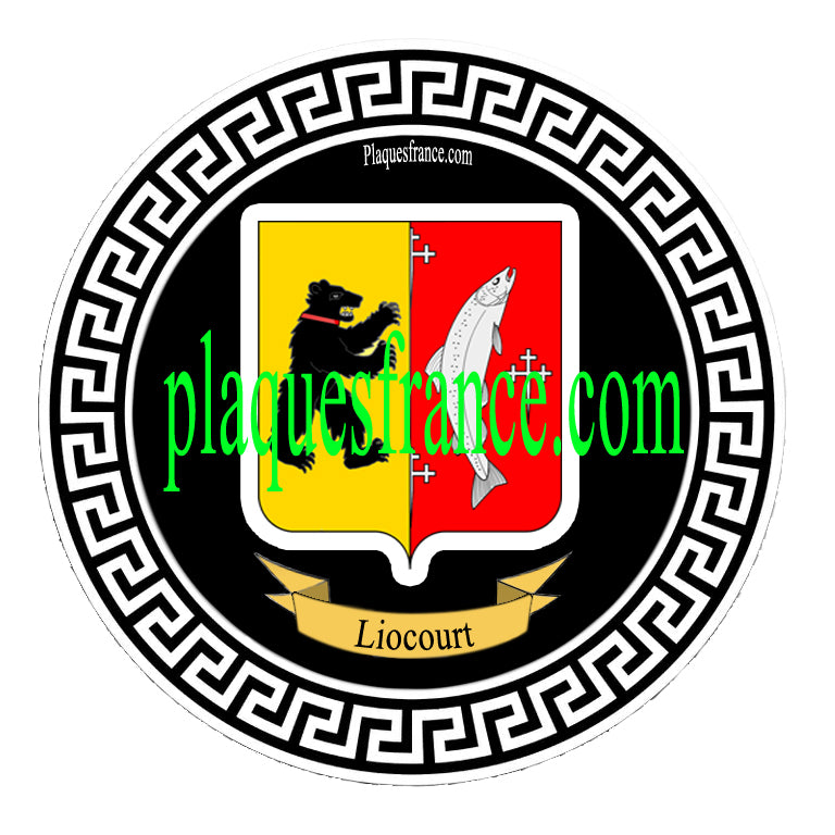 Plaque métal décorative fond noir ronde Ø 30 cm Liocourt, canton du Saulnois Moselle 57