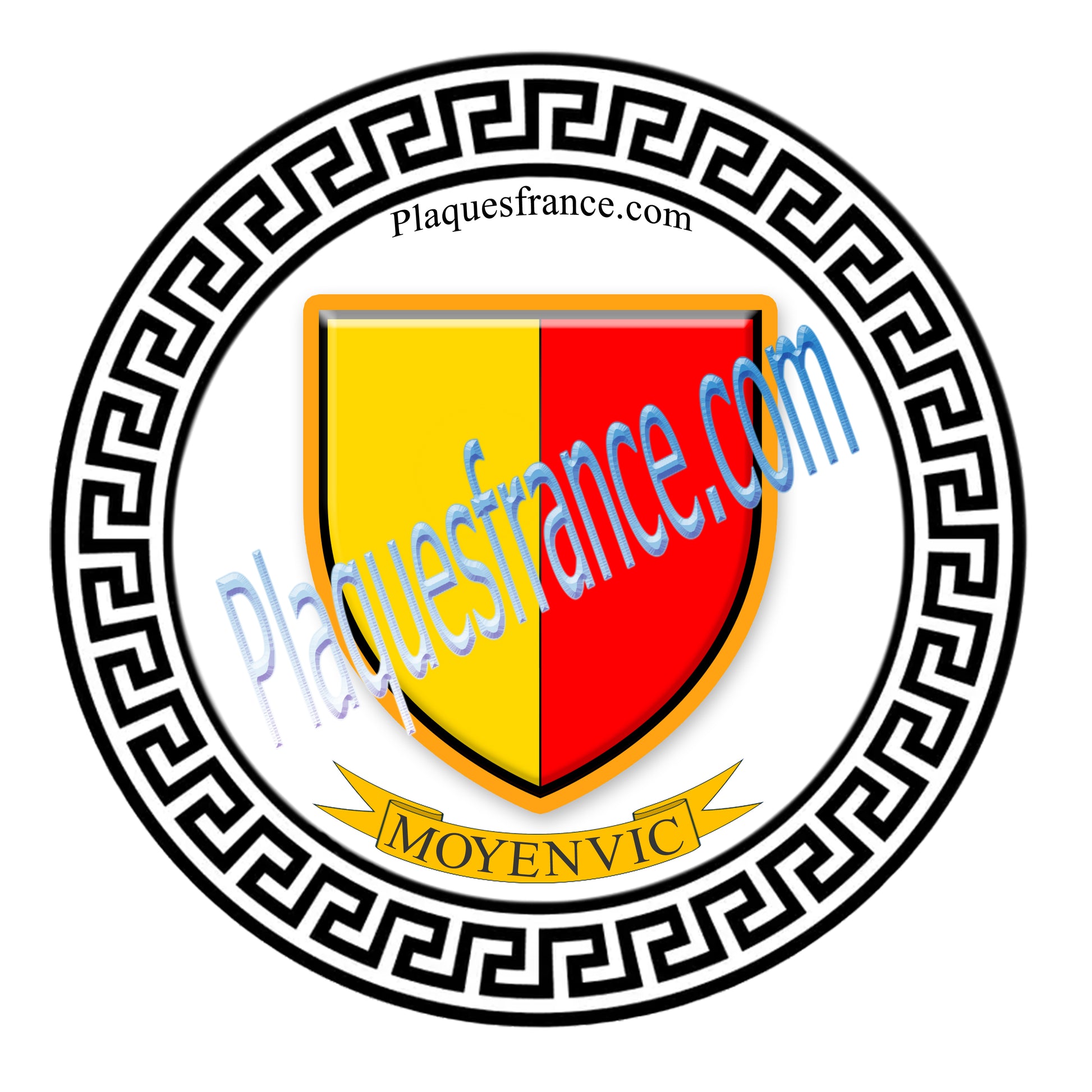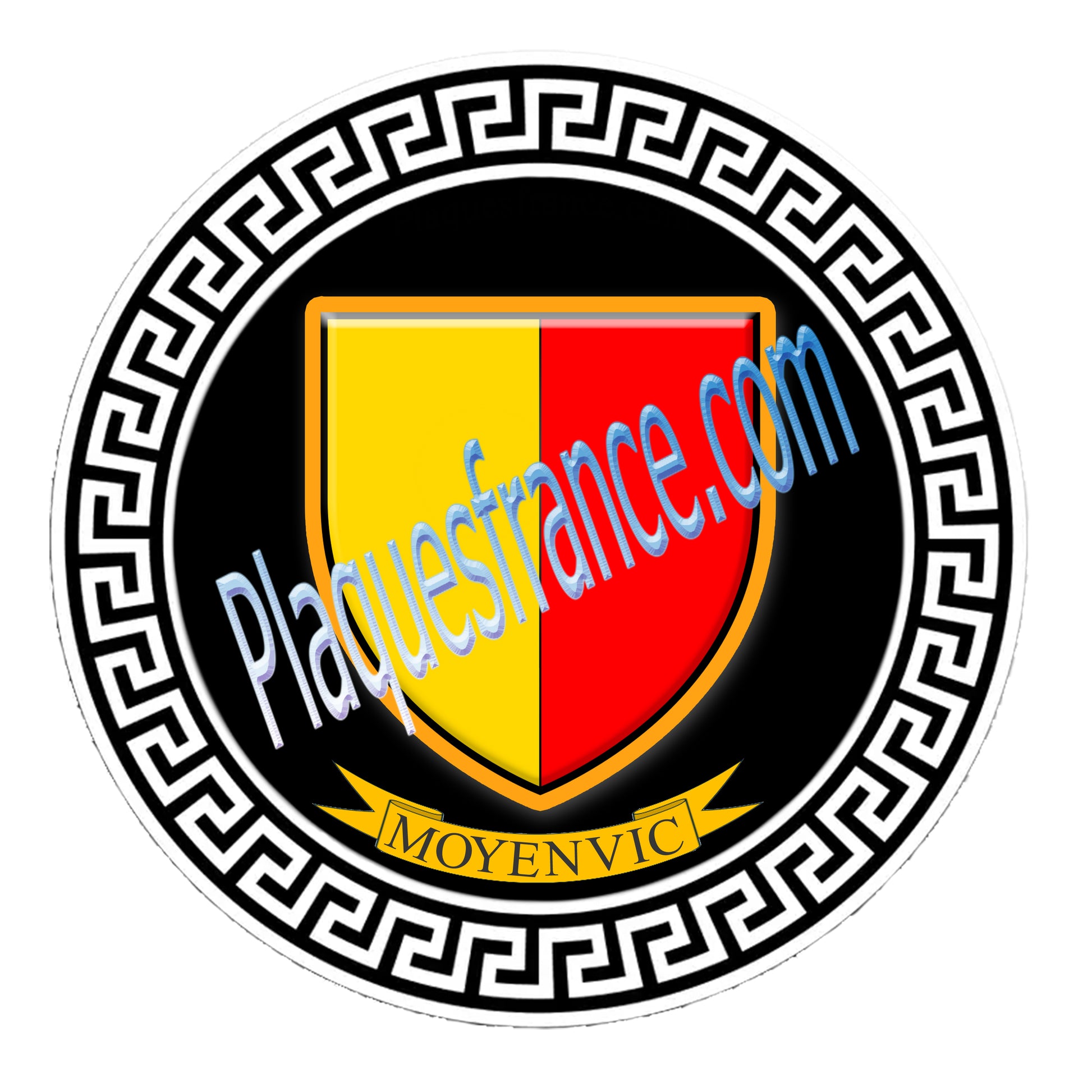 Plaque métal décorative fond noirc ronde Ø 30 cm Moyenvic, canton du Saulnois Moselle 57