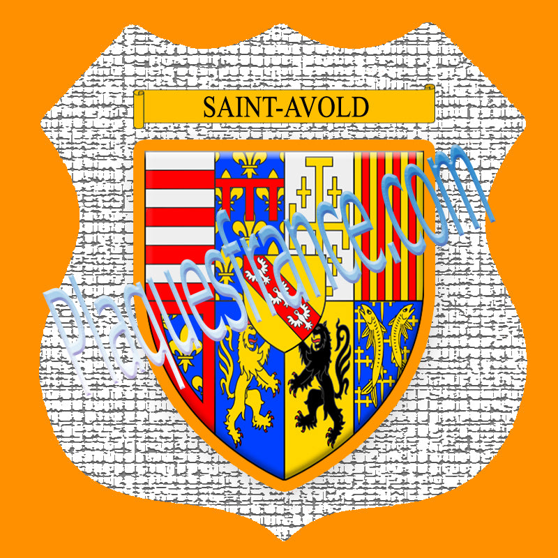 Plaque métal décorative format écusson Ø 30cm fond craquelures blason Saint-Avold, Moselle 57