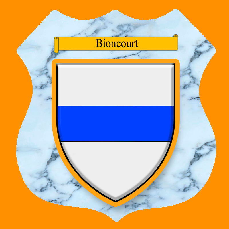 Plaque métal décorative format écusson Ø 30cm fond marbre blason Bioncourt, Moselle 57