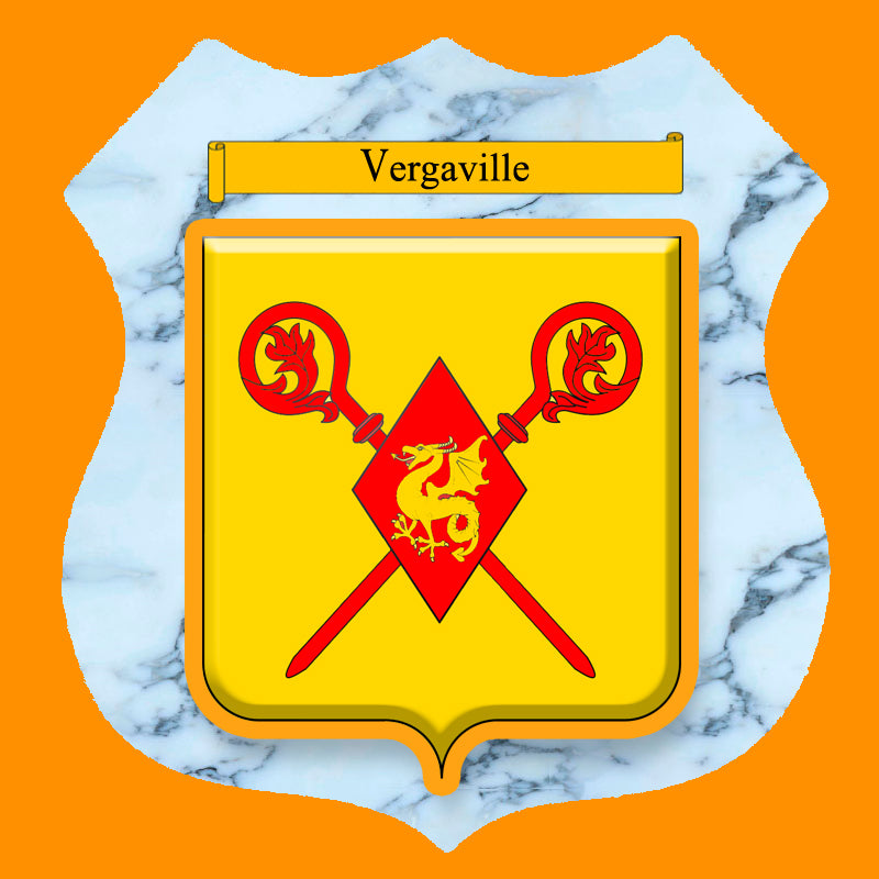Plaque métal décorative format écusson Ø 30cm fond marbre blason Vergaville, Moselle 57