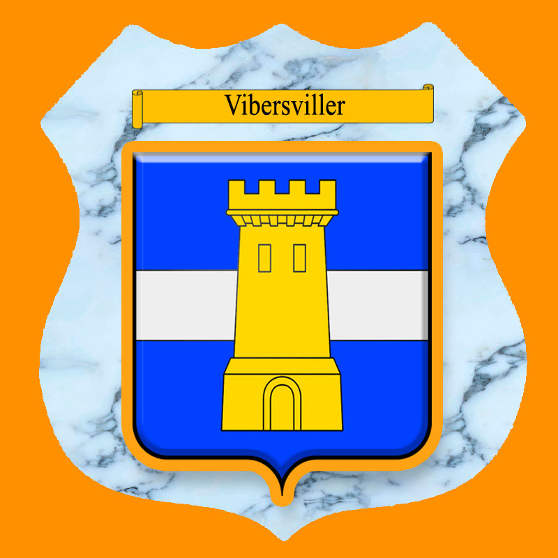 Plaque métal décorative format écusson Ø 30cm fond marbre blason Vibersviller, Moselle 57