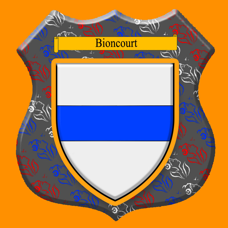 Plaque métal décorative format écusson Ø 30cm fond marianne blason Bioncourt, Moselle 57