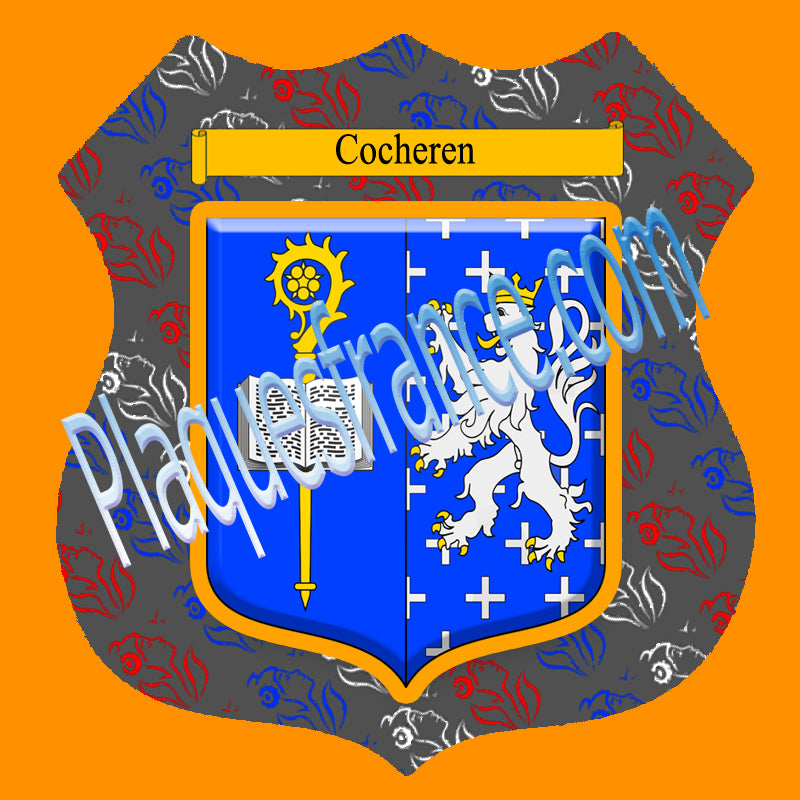 Plaque métal décorative format écusson Ø 30cm fond marianne blason Cocheren, Moselle 57