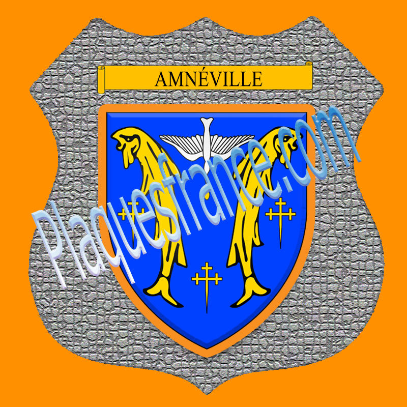 Plaque métal décorative format écusson Ø 30cm fond mozaique Amnéville, Moselle 57