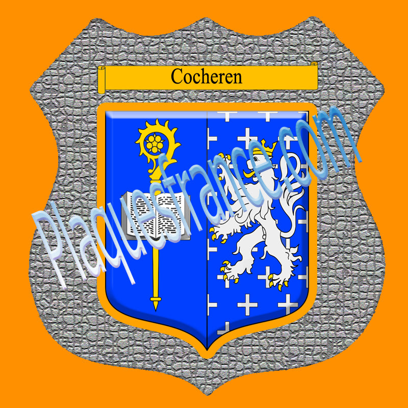 Plaque métal décorative format écusson Ø 30cm fond mozaique blason Cocheren, Moselle 57