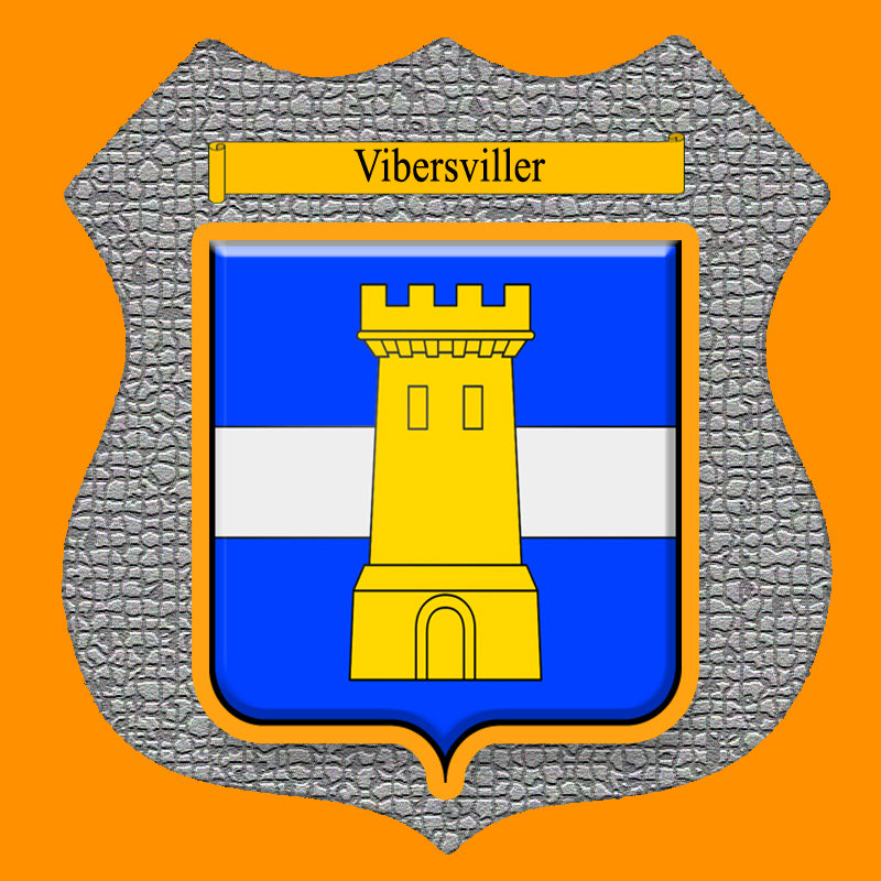 Plaque métal décorative format écusson Ø 30cm fond mozaique blason Vibersviller, Moselle 57