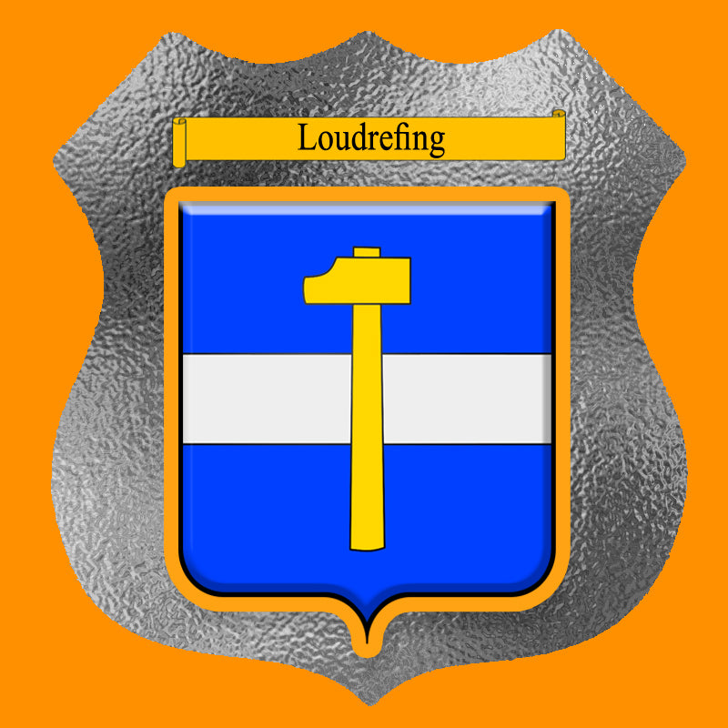 Plaque métal décorative format écusson Ø 30cm fond verre dépoli blason Loudrefing, Moselle 57