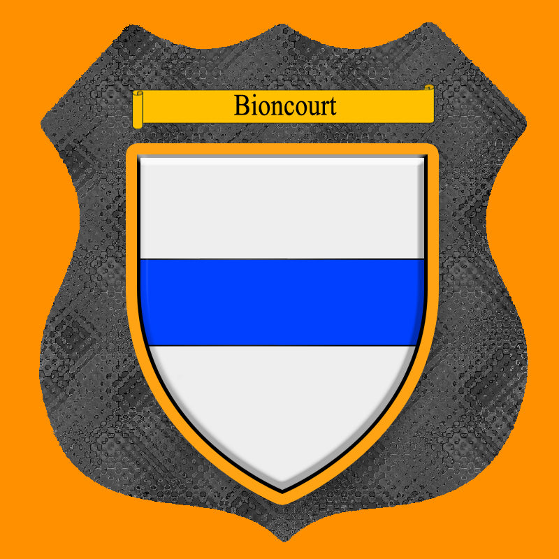 Plaque métal décorative format écusson Ø 30cm fond verre+métal blason Bioncourt, Moselle 57