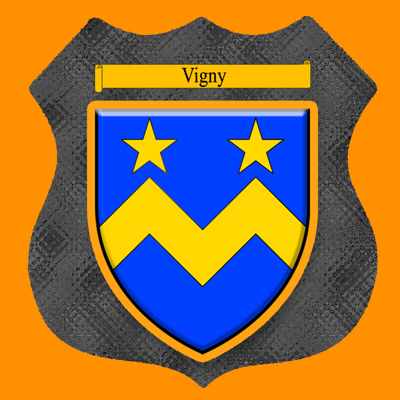 Plaque métal décorative format écusson Ø 30cm fond verre+métal blason Vigny, Moselle 57