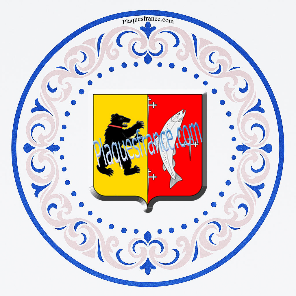 Plaque métal décorative frise lys ronde Ø 30 cm blason Liocourt, canton du Saulnois Moselle 57