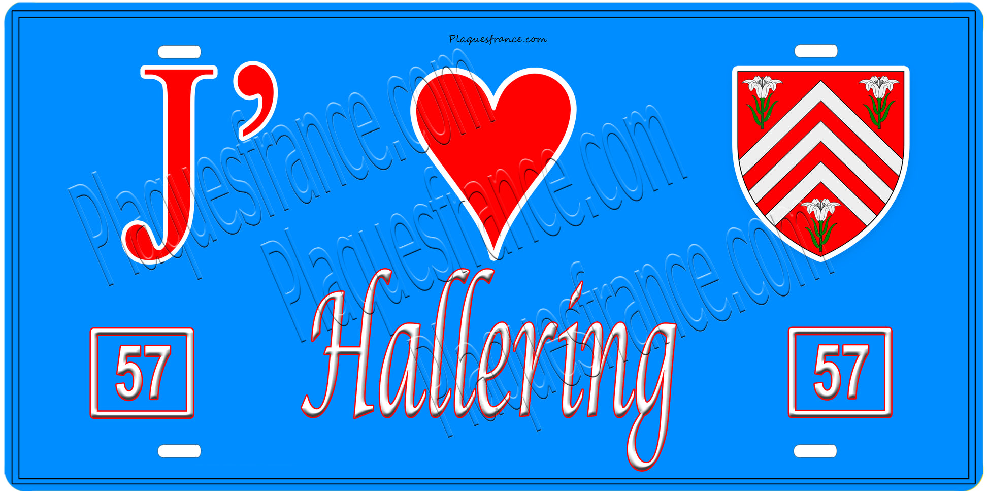 Plaque métal décorative, J'❤️Hallering, Moselle (57)